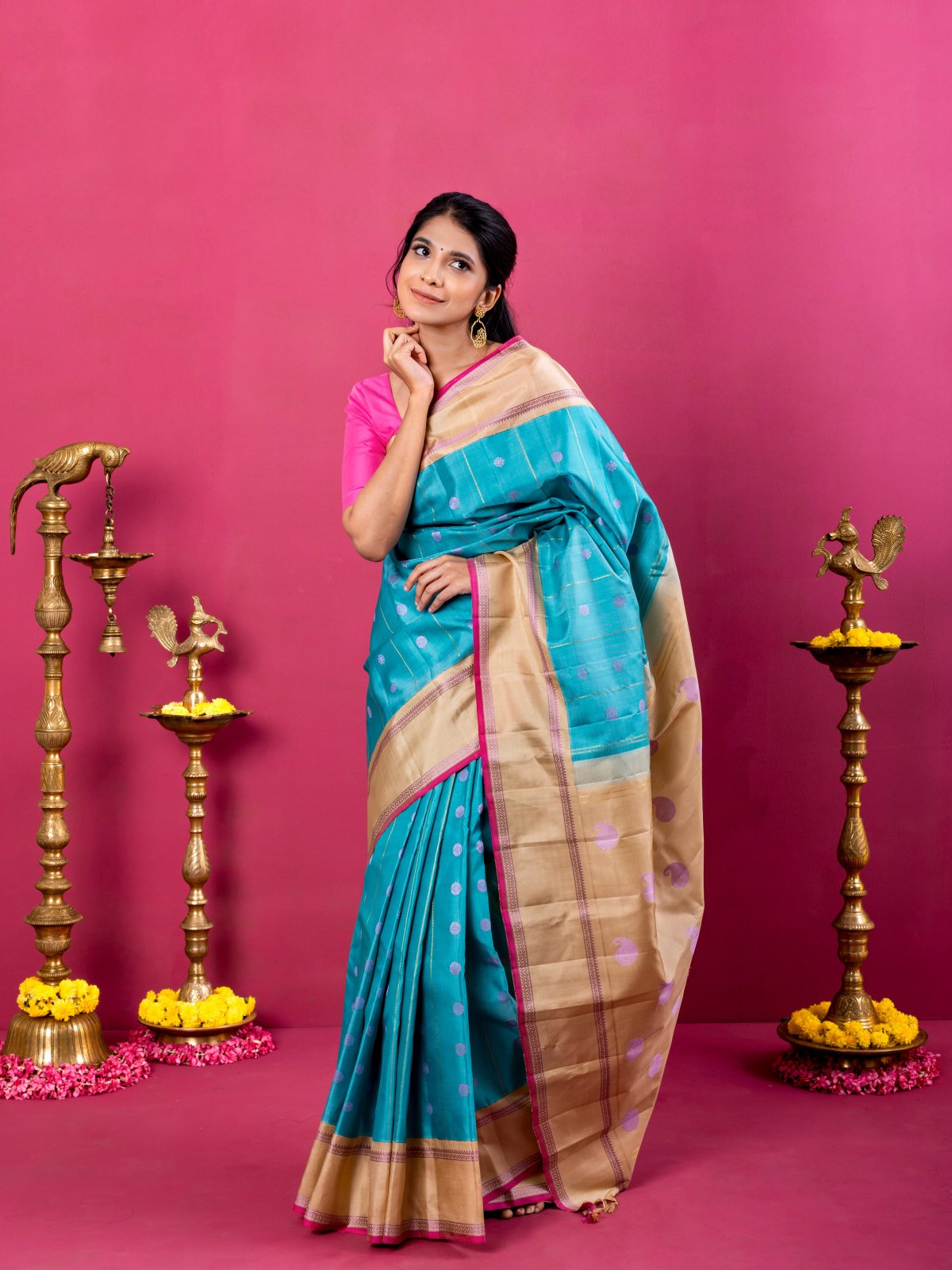 Drape yourself in royal elegance with our Gadwal Silk Saree, a treasured...